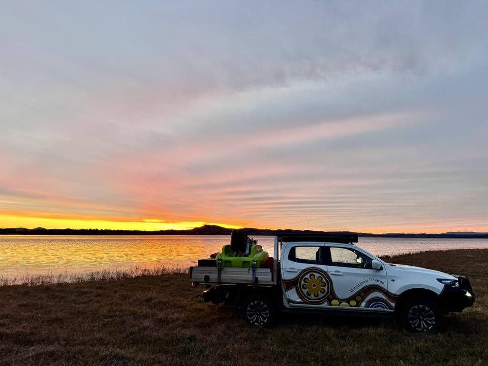 If you’re out on Gamilaraay Country, look out for Coonabarabran LALC and the Murrunmala Dhawun Rangers in their custom car wrap undertaken by Surf, Work & Street with artwork by Uncle Keith Hinton. The Artwork symbolises a meeting place where the Rangers will collaborate with Elders and Community about the work they will do. The larger circles represent all the traditional lands of the Gamilaraay People in the Coonabarabran Area. The special blue circle represents Forky Mountain.